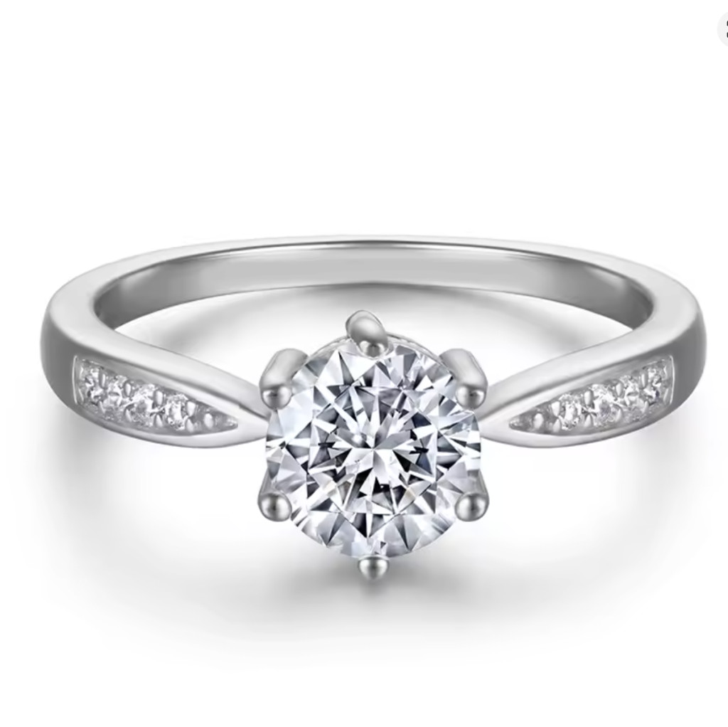Dünner Verlobungsring aus Silber, verziert mit weißem Zirkonia-Kristall.