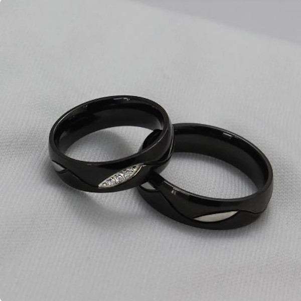 Herren-Ehering, Edelstahl, schwarz, Größe 11
