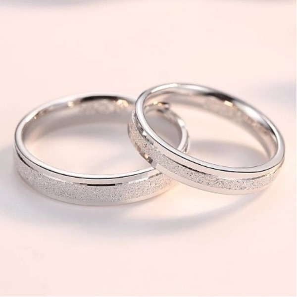 Herren-Ehering aus Silber, verziert mit einem Streifen in der Mitte. Gewicht 3,3 g.