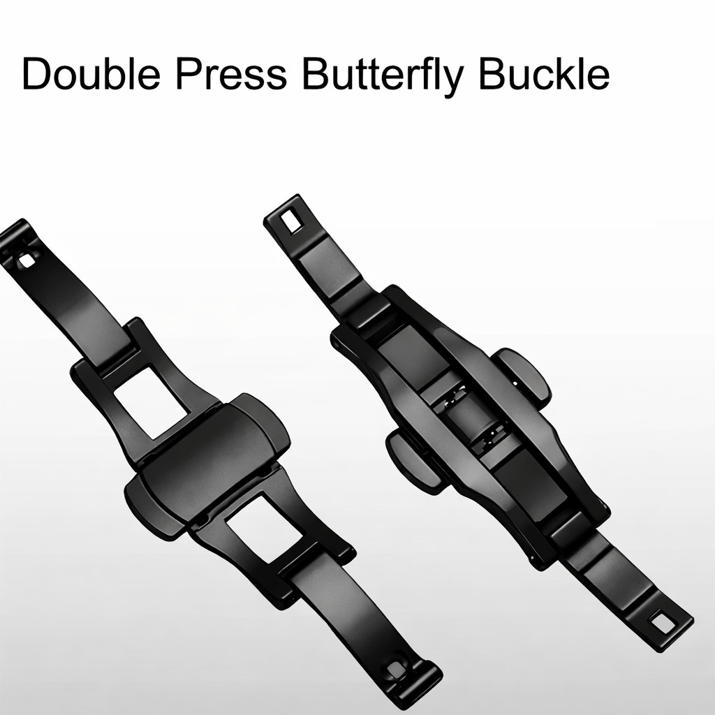 A dupla nyomógombos pillangócsat biztonságos záródást garantál, miközben gyors és kényelmes fel- és levételt tesz lehetővé. Az állítható kialakításnak köszönhetően az óraszíj könnyen személyre szabható, így hosszú távon is komfortos marad. Ez a típus ideális választás azok számára, akik tartós, időtálló és esztétikus megoldást keresnek órájuk megjelenésének megújításához, kompromisszumok nélkül.