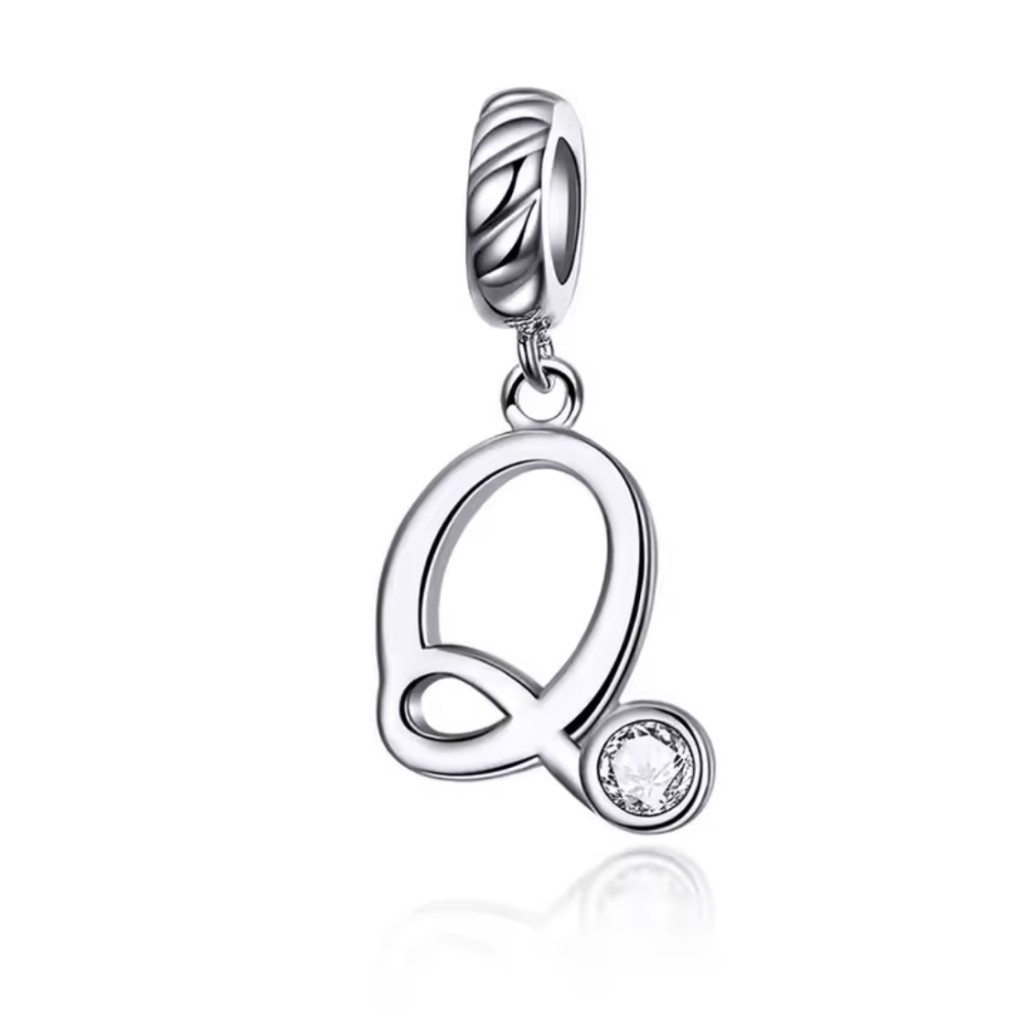 Ezüst charm, Q betű cirkónium kristállyal