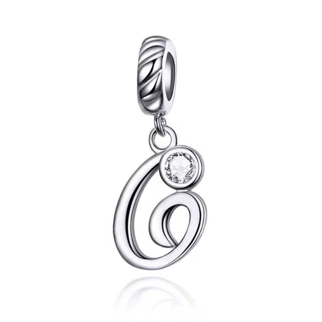 Ezüst charm, G betű cirkónium kristállyal