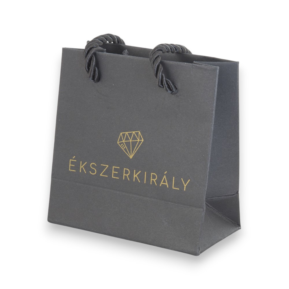 Stílusos, fekete ajándéktáska arany Ékszerkirály logóval, mely méltó kiegészítője bármely ékszerajándéknak.