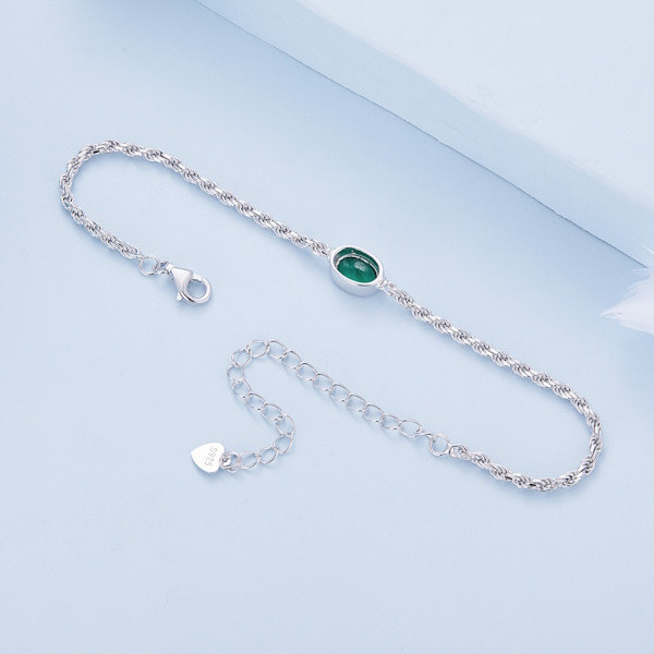 Ez az elegáns ezüst karkötő zöld kristállyal a kifinomultság és az egyszerűség tökéletes egyensúlyát nyújtja. A 925 sterling ezüst alapanyag platinabevonattal készült, amely nemcsak a tartósságot, hanem a fényes megjelenést is garantálja. A karkötőt díszítő csepp alakú cirkóniumkristály különleges ragyogást kölcsönöz viselőjének, és a finom részletek igazán nőies megjelenést biztosítanak.
