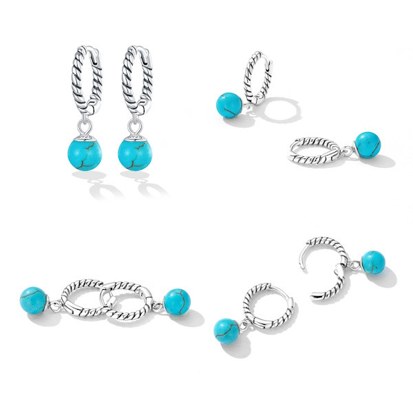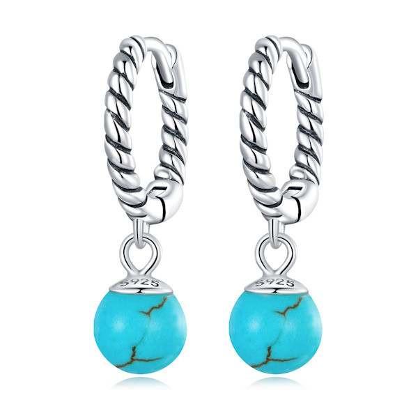 Ezüst karikafülbevaló türkizkristállyal