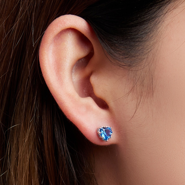 Ezüst fülbevaló, kék szív