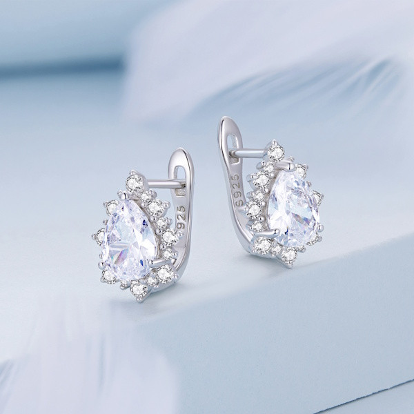 Légy elbűvölő ezekkel az elegáns, kristályos vízcsepp formájú ezüst fülbevalókkal, amelyek tökéletesen tükrözik a kifinomult ízlésedet. A 925 sterling ezüst alapot platinabevonat teszi még ellenállóbbá, míg a csillogó cirkóniumkristályok ragyogó megjelenést kölcsönöznek neked. A csepp alakzat az élet forrását, a vizet szimbolizálja, amely a tisztaságot és a megújulást jelképezi, így viselve mindig emlékeztet a friss kezdetekre és az örök folyamatosságra.