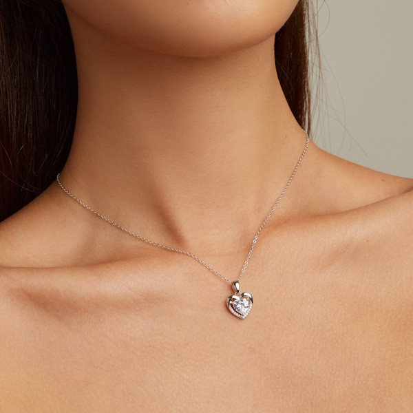 Ez az elegáns ezüst nyaklánc tökéletes választás mindennapi viseletre és különleges alkalmakra egyaránt. A 925 sterling ezüstből készült lánc csillogó cirkóniumkristállyal díszített szívmedállal teszi igazán különlegessé megjelenésed. A platina bevonat biztosítja a tartós fényt és eleganciát, amit egyetlen más anyag sem tud felülmúlni. A szív motívum az örök szerelem és bensőséges kapcsolatok jelképe, így ez a nyaklánc ideális ajándék lehet szeretteid számára, hogy kifejezd érzéseidet. A lánc hossza, amely 41+5 cm, tökéletesen illeszkedik bármilyen nyakvonalhoz, míg a medál finom mérete (1.8×1.3 cm) diszkrét, mégis figyelemfelkeltő. Könnyű, mindössze 2.9 grammos súlya miatt kényelmesen viselhető, és biztosan a kedvenc kiegészítőd lesz. Viseld ezt a gyönyörű nyakláncot, és ragyogj minden pillanatban!