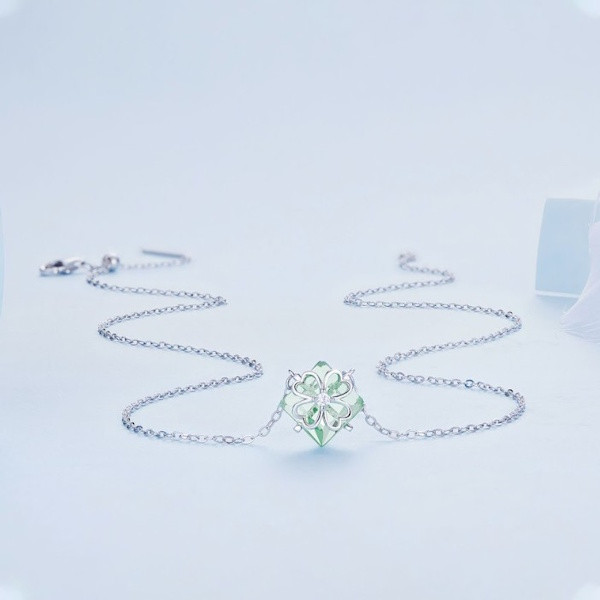 Ez az elegáns ezüst nyaklánc tökéletes választás mindennapi viseletre vagy különleges alkalmakra. A 925 sterling ezüst alapanyag platinabevonattal van ellátva, amely nemcsak csillogóvá, hanem tartóssá is teszi a nyakláncot. Az áttetsző üvegmedálban egy gyönyörű, aprólékosan kidolgozott lóhere motívum található, amely a szerencse és a remény szimbóluma. A lóhere, különösen a négylevelű változata, régóta a szerencse jelképe, és egyedi jelentéstartalommal bír különböző kultúrákban.