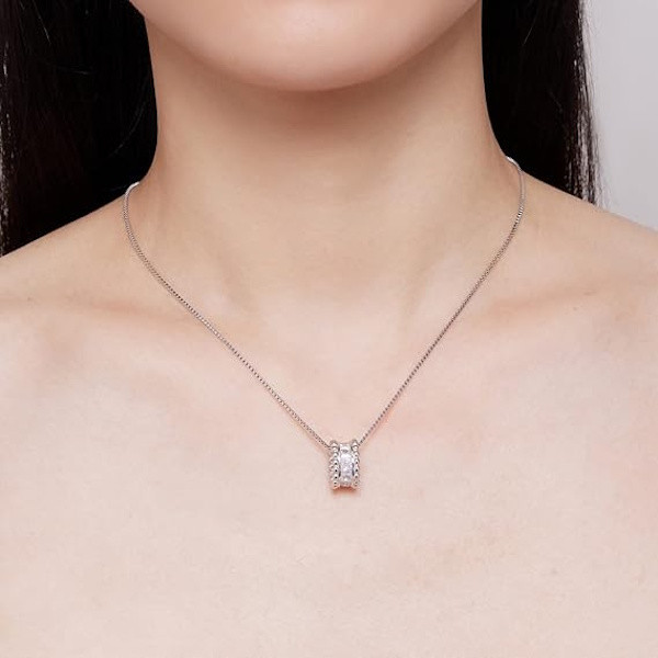 Engedd, hogy az elegancia és a finom részletek elvarázsoljanak ezzel a lenyűgöző ezüst női nyaklánccal, amelyet egy gyűrűmedál díszít. A 925 sterling ezüstből készült nyaklánc cirkóniumkristályokkal és platinabevonattal ragyog, így minden megjelenésednek különleges csillogást kölcsönöz. A gyűrűmedál nem csupán egy dekoratív elem; a kör formája az örökkévalóság és a teljesség szimbóluma, így tökéletes ajándék lehet szeretteid számára, akiknek szeretnéd kifejezni maradandó szeretetedet. A 40 + 5 cm-es lánc ideális hosszúságú, hogy kényelmesen viselhesd bármilyen alkalomra, legyen az hétköznapi vagy különleges esemény. A mindössze 6.0 g súlyú nyaklánc könnyed, mégis figyelemfelkeltő, így tökéletes választás, ha valami igazán különlegeset keresel. Lepd meg vele magad vagy ajándékozd meg szeretteidet, hogy minden nap emlékeztesse őket az örök értékekre.