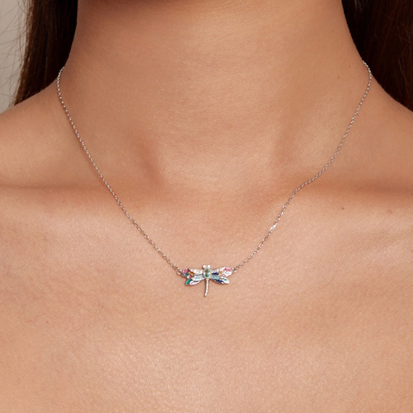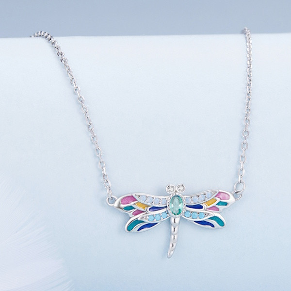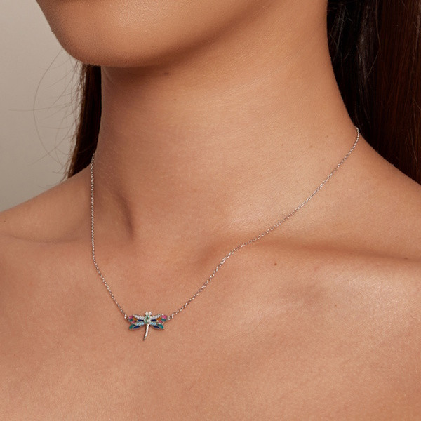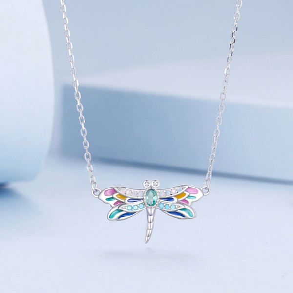 Ez az elbűvölő ezüst női nyaklánc szitakötőmedállal igazi különlegesség, amely minden öltözetedet feldobja. A 925 sterling ezüst alapanyag biztosítja a tartósságot és a minőséget, míg a színes zománcozás és az áttetsző üveg elegáns megjelenést kölcsönöz a darabnak. A nyaklánc 40 + 5 cm hosszúságával tökéletesen illeszkedik minden nyakhoz, és 2.4 grammos súlyával könnyed és kényelmes viselet. A szitakötő motívum nemcsak gyönyörű, hanem szimbolikus jelentése is van: a szitakötő a változást, az átalakulást és az önismeretet jelképezi, így ez a nyaklánc nemcsak stílusos, hanem mélyebb üzenetet is hordoz. Tökéletes ajándék lehet szeretteid számára, legyen szó születésnapról, évfordulóról vagy bármilyen különleges alkalomról. Viseld ezt a nyakláncot, és hagyd, hogy a szitakötő varázsa magával ragadjon!