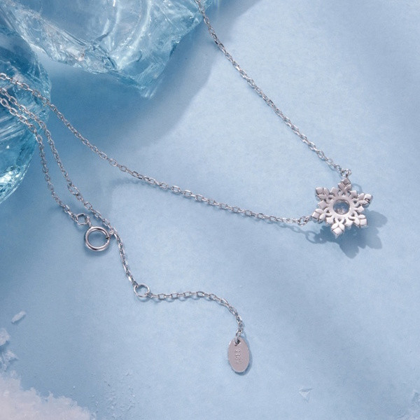 Éld át a tél varázsát ezzel a lenyűgöző ezüst nyaklánccal, amelyet egy gyönyörű hópehely medál ékesít. A 925 sterling ezüstből készült lánc finom fehérarany-bevonattal rendelkezik, amely kiemeli a medálon található cirkóniumkristály káprázatos ragyogását. A hópehely motívum a természet tökéletességét és az egyediség szépségét szimbolizálja, hiszen minden hópehely egyedi, akárcsak te magad.