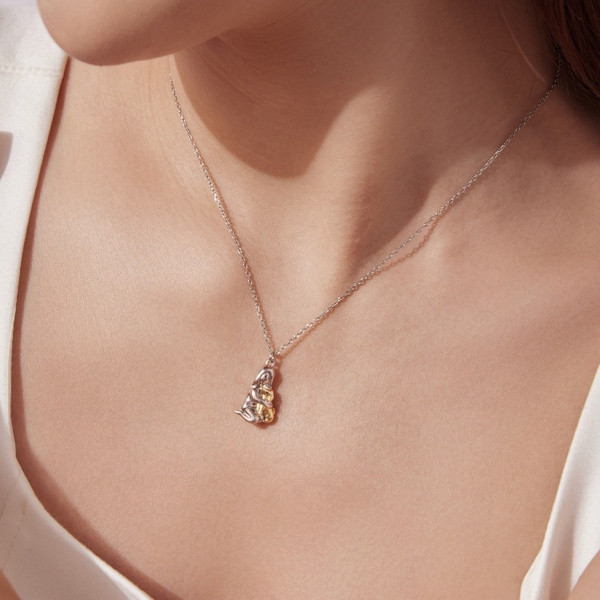 Ez az elegáns ezüst nyaklánc tökéletes választás mindazok számára, akik szeretik a finom részleteket és az állatokat. A lánc 925 sterling ezüstből készült, arany- és fehérarany-bevonattal, amely elegáns megjelenést kölcsönöz. A medál egy bájos kiskutyát ábrázol, amely hűséget és szeretetet szimbolizál – a kutyák a barátság és a hűség örök jelképei.