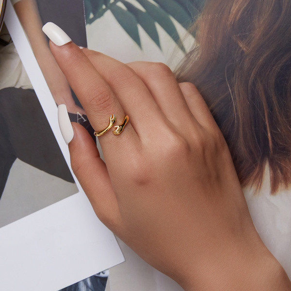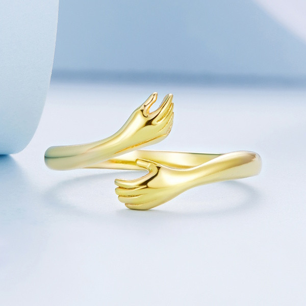 Ezüst női gyűrű, ölelés, aranyszínű