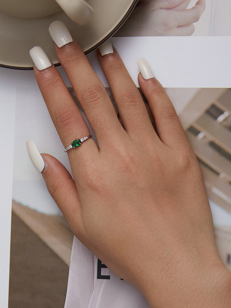 A gyűrű középpontjában egy mély smaragd színű cirkónia ragyog, amely a szerelem, a remény és az örökkévalóság jelképe. A smaragdzöld árnyalat évszázadok óta a luxus és királyi méltóság színe – így viselője igazán különlegesnek és magabiztosnak érezheti magát.