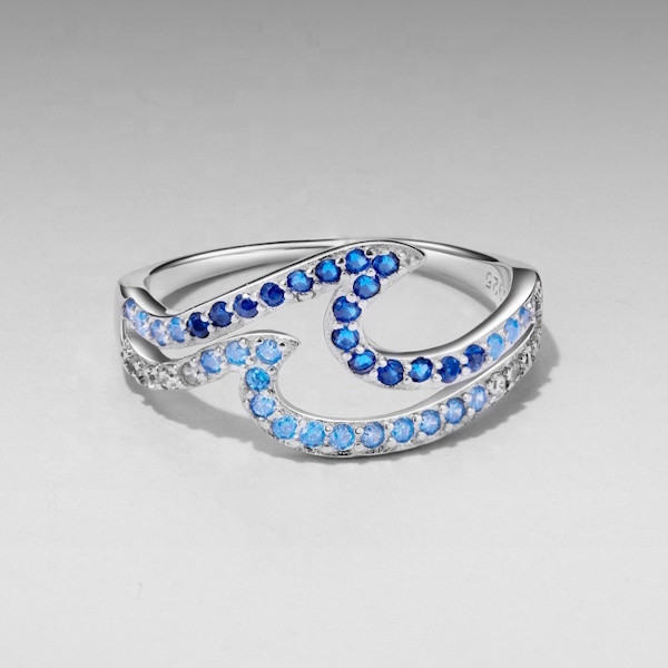Ezüstből készült női gyűrű fehérarany-bevonattal és cirkóniumkristállyal. Szélessége 0.12-1.1 cm, súlya 2 g.