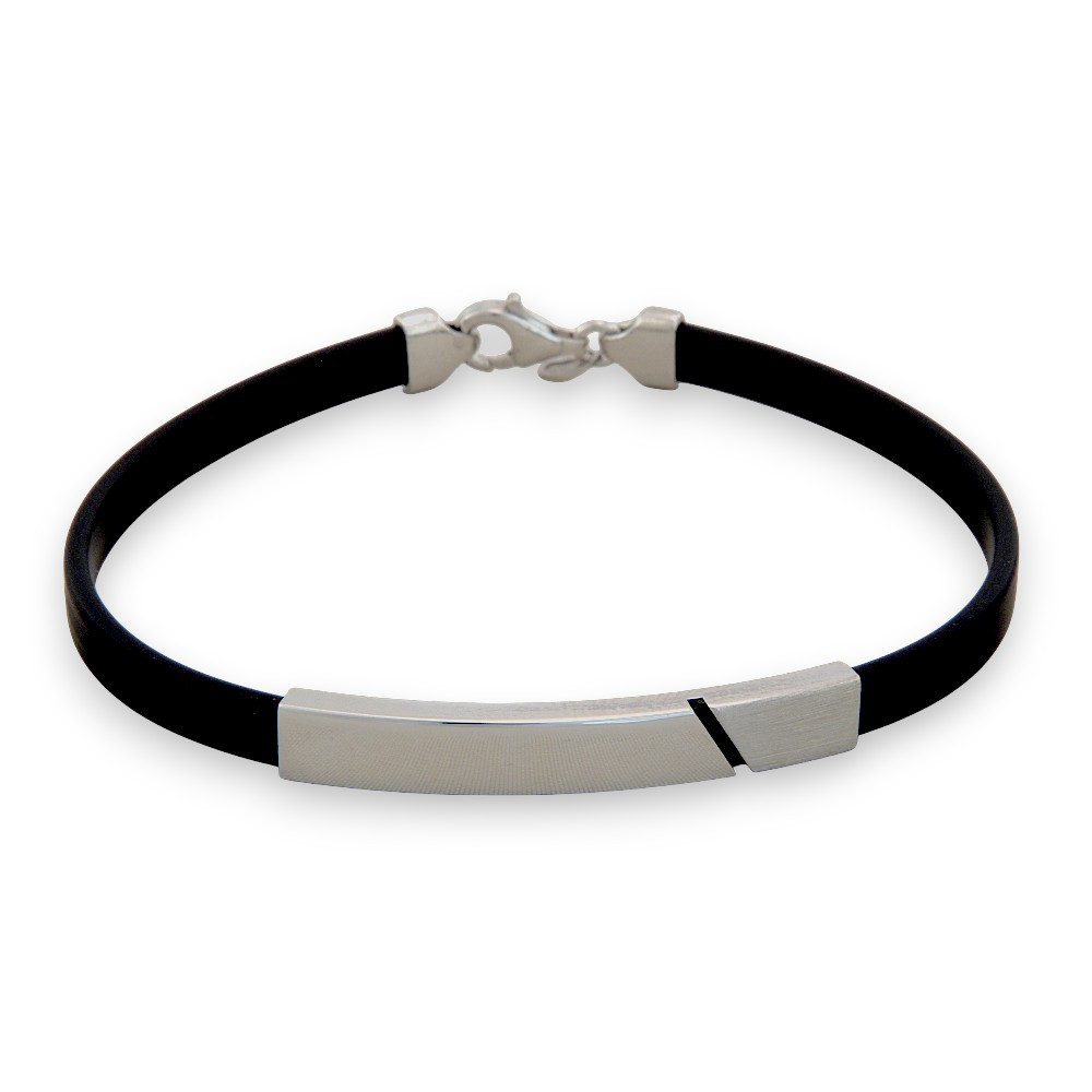 Ez az ezüst karkötő tökéletes választás azok számára, akik kedvelik a modern, sportos eleganciát. A fekete kaucsuk szíj és a 925 sterling ezüst betét kombinációja egyedi stílust kölcsönöz a viselőjének. Az ezüst dísz diszkrét csillogása és a minimalista dizájn letisztult vonalai nagyszerűen illeszkednek a mindennapi öltözékedhez vagy épp egy smart casual szetthez.