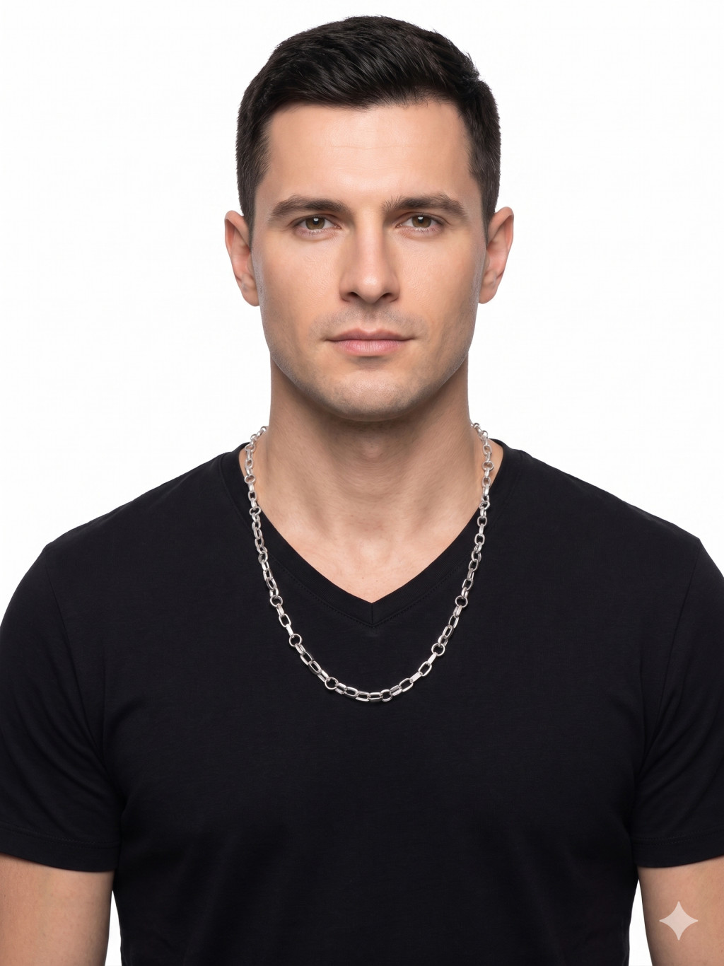 Silberne Halskette, abgeflachte Rüstung, 45 cm Unisex