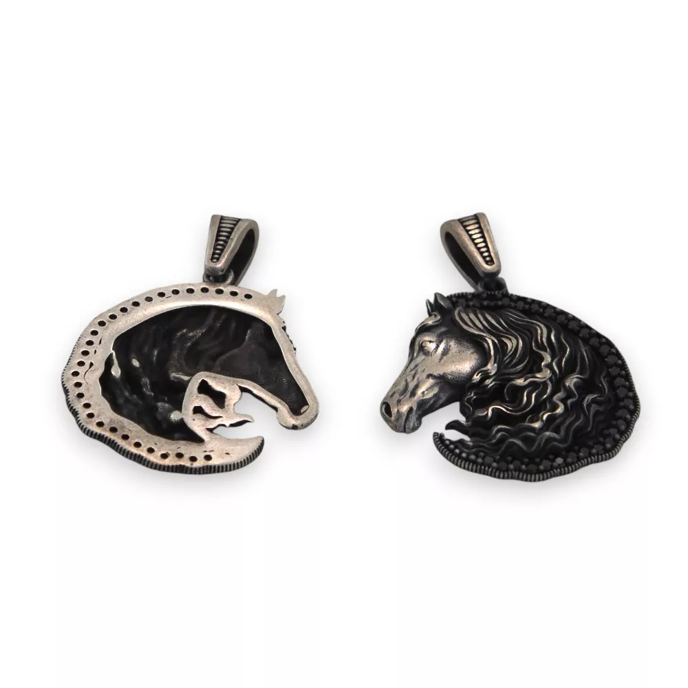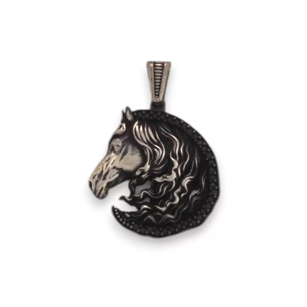 Ez a férfias, karakteres sterling ezüst medál egy ló fejét ábrázolja, amely részletes kidolgozásának köszönhetően szinte életre kel. A medál különlegességét a sötétített felület emeli ki, amely kontrasztot ad a polírozott részekhez, így minden apró részlet – a ló sörényének ívei, arcvonásai – még hangsúlyosabbá válik. A medált hagyományos öntési technológiával készítik, majd kézi utómunkával finomítják, hogy igazán egyedi megjelenést kapjon.