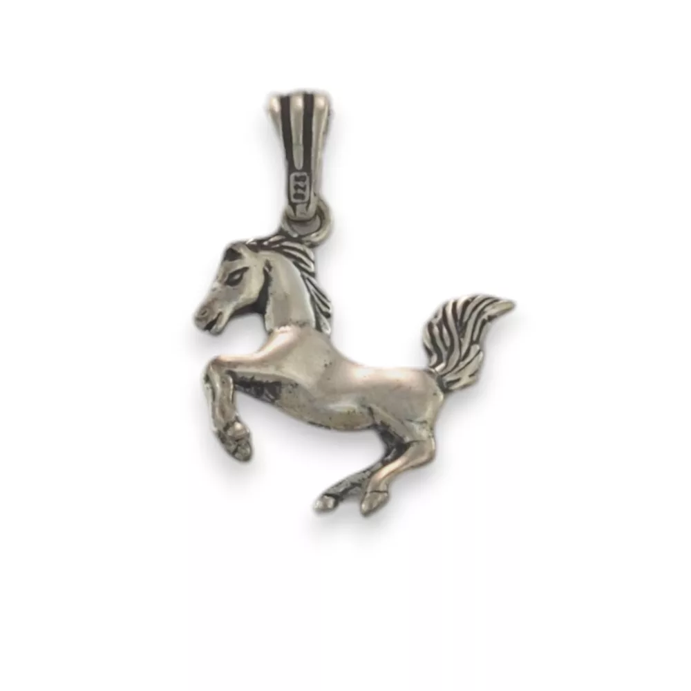 Ez a sterling ezüstből készült ló alakú medál az elegancia és a szabadság szimbóluma. A részletgazdag kidolgozásnak köszönhetően a felágaskodó ló formája erőt és dinamizmust sugároz, amely minden megjelenést különlegessé tesz. A medál hagyományos öntési eljárással készül, majd kézi polírozással nyeri el végső fényét, így garantálva az aprólékos részletek kiemelését és a tartós ragyogást.