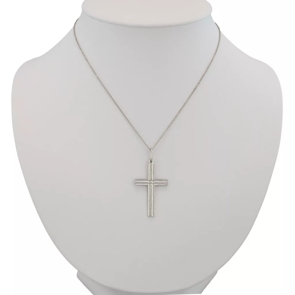 Ez a klasszikus kereszt alakú sterling ezüst medál a letisztult elegancia és a kifinomult kézműves munka tökéletes példája.