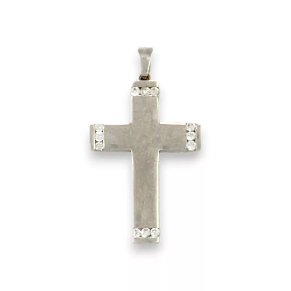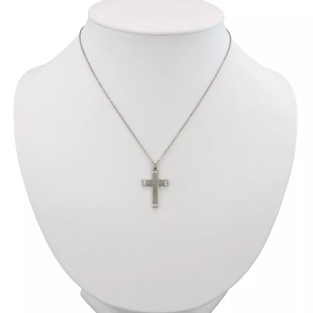 Ez a klasszikus, letisztult kereszt alakú medál sterling ezüstből készült, melyet apró cirkónia kövek díszítenek a szárak végein.