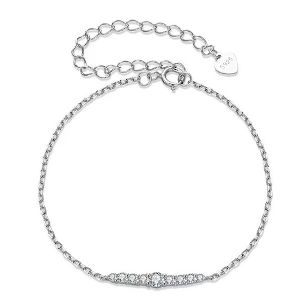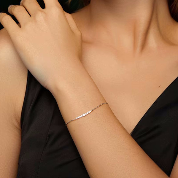 Ez az elegáns, 925 sterling ezüstből készült karkötő a modern nő stílusos kiegészítője lehet. A fehérarany-bevonat egy kis luxust csempész a megjelenésedbe, míg a moissanitkristály ragyogó csillogása minden szemet magával ragad. A karkötő különlegessége a kör alakú kristályos rész, amely az örökkévalóságot és a teljességet jelképezi. Ezt az időtlen motívumot már az ókorban is használták, hogy az egység és a harmónia szimbólumaként szolgáljon.