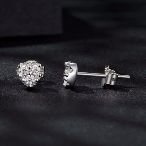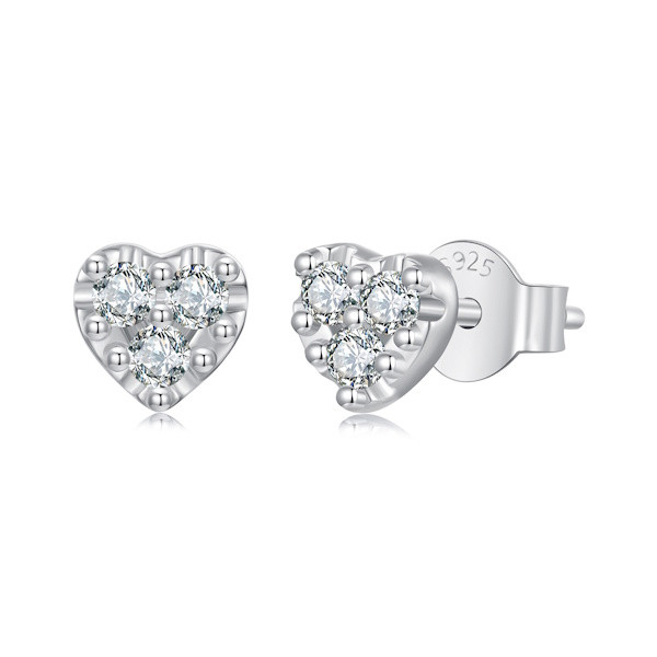 Ezüst szívfülbevaló moissanitkristállyal