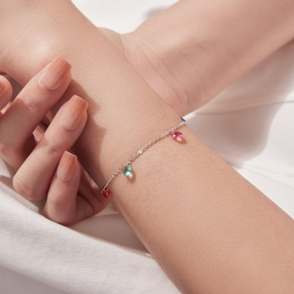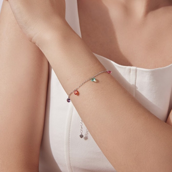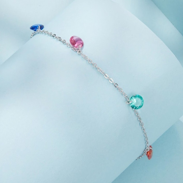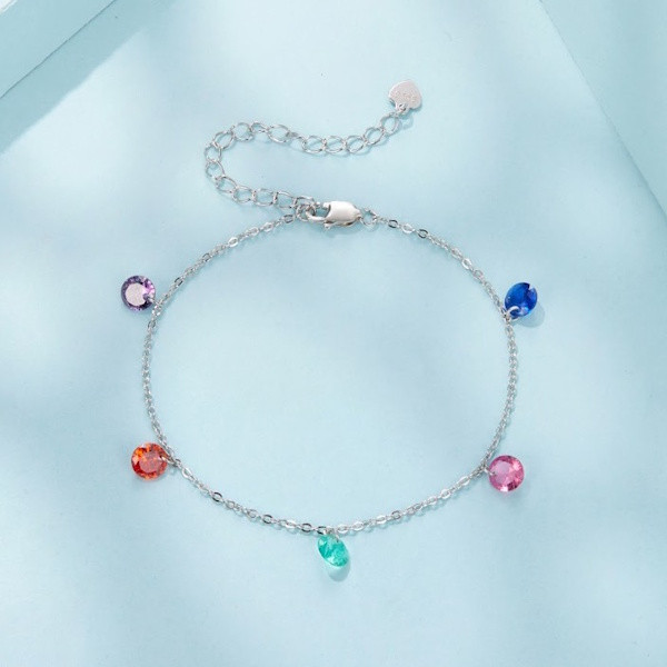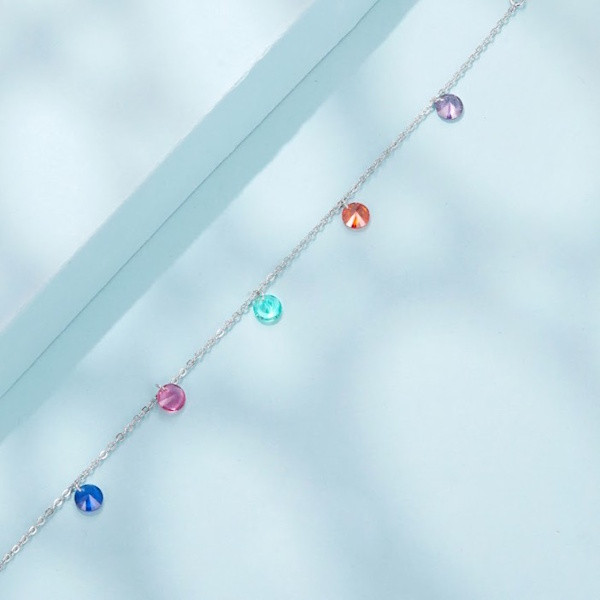 Ez az elegáns ezüst karkötő tökéletes választás, ha valami különlegeset keresel. Az 925 sterling ezüst alapanyag fehérarany-bevonattal van ellátva, amely elegáns fényt kölcsönöz a karkötőnek. A színes kristályok ragyogóan csillognak, ami minden pillantást magával ragad. Ez a finom ékszer ideális kiegészítője lehet bármilyen öltözéknek, legyen szó hétköznapi viseletről vagy különleges alkalmakról.