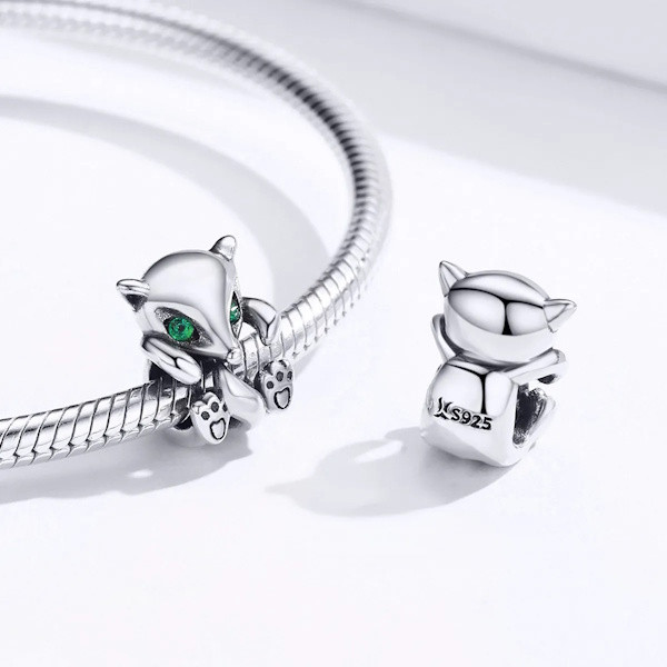 **925 sterling ezüst charm, kisróka**
