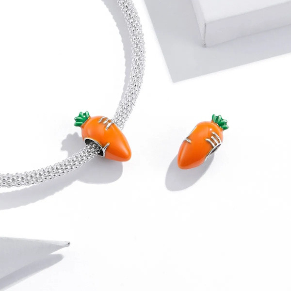 Dobd fel az ékszerkollekciódat ezzel a vidám és színes sárgarépa charm-mal! Ez a bájos kis kiegészítő 925-ös sterling ezüstből készült, és a részletes zománcozásának köszönhetően élethűen idézi meg a friss zöldségek világát. Tökéletes választás karkötőre vagy nyakláncra, ha valami egyedit szeretnél viselni a mindennapokban.