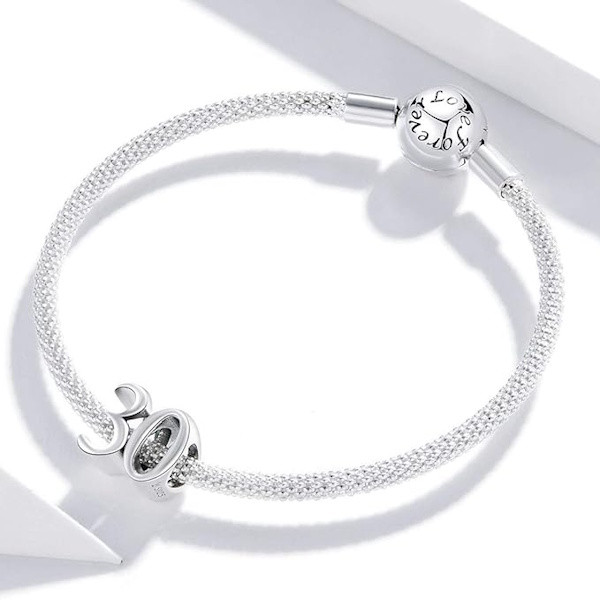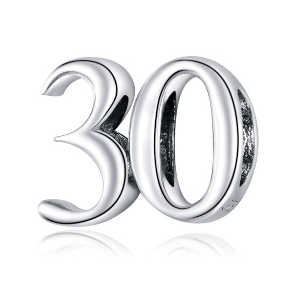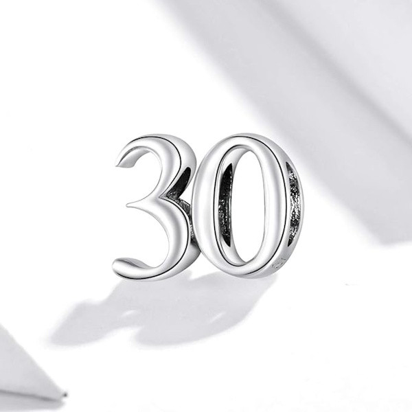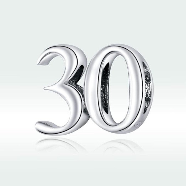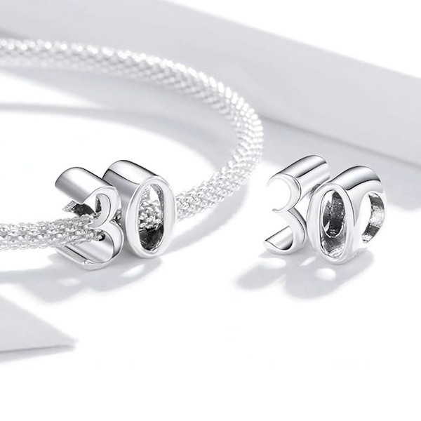 Ez a különleges 925 sterling ezüst charm igazi ékszergyöngyszem, amelyet bármelyik karkötőre vagy nyakláncra könnyedén felhelyezhetsz. A 925 sterling ezüstből készült oxidált felületének köszönhetően időtlen eleganciát sugall. A charm a 30-as számot formázza, amely egyaránt lehet a kerek születésnapok vagy évfordulók szimbolikus dísze.