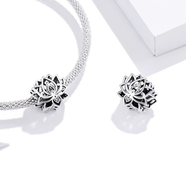 Fedezd fel a lótuszvirág szépségét ezzel az elegáns ezüst charm-mal, amely tökéletes kiegészítője lehet bármely karkötőnek vagy nyakláncnak. Az oxidált 925 sterling ezüstből készült charm finom részletei kiemelik a lótuszvirág szimbolikus jelentését, amely a tisztaságot, újjászületést és spirituális megvilágosodást jelképezi. A lótuszvirág az egyik legősibb és legelterjedtebb motívum a világ kultúráiban, amely az élet nehézségeinek leküzdését és a belső béke megtalálását szimbolizálja.