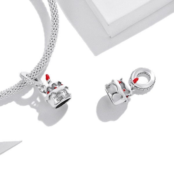 Ezüst charm (925), szülinapi torta