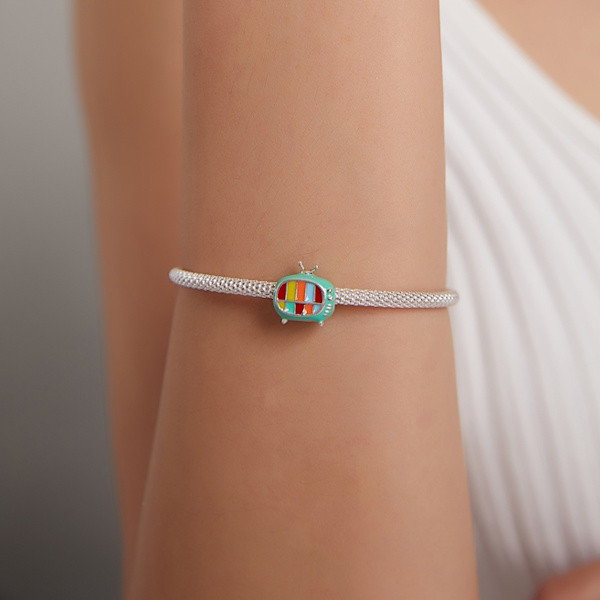 Merülj el a nosztalgia világában ezzel a bájos, miniatűr televíziót formázó ezüst charmmal! A 925 sterling ezüstből készült ékszer aprólékos színes zománcozással van díszítve, amely életre kelti a régi idők televíziózásának varázsát. Méretének köszönhetően – csupán 1.1 × 1.1 cm – tökéletesen illeszkedik karkötődre vagy nyakláncodra, így mindig veled lehet ez a különleges kis emlék.