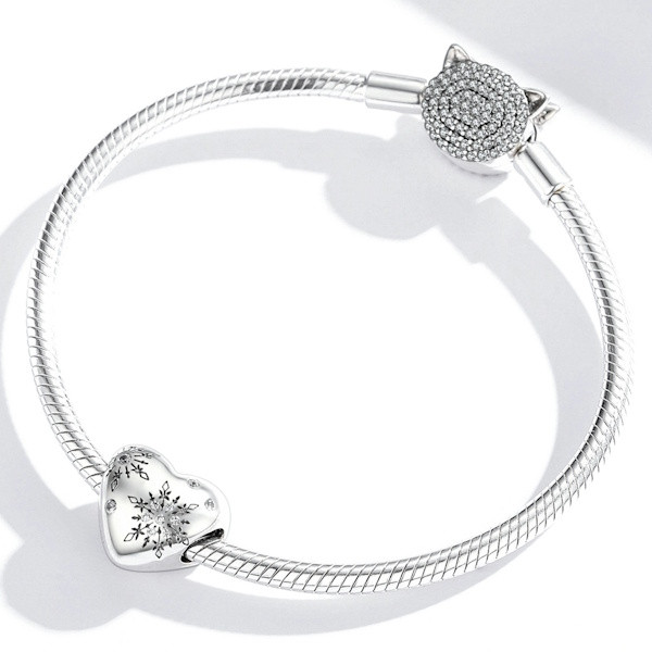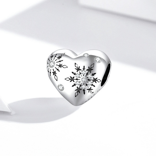 Ezüst charm (925), szív hópelyhekkel