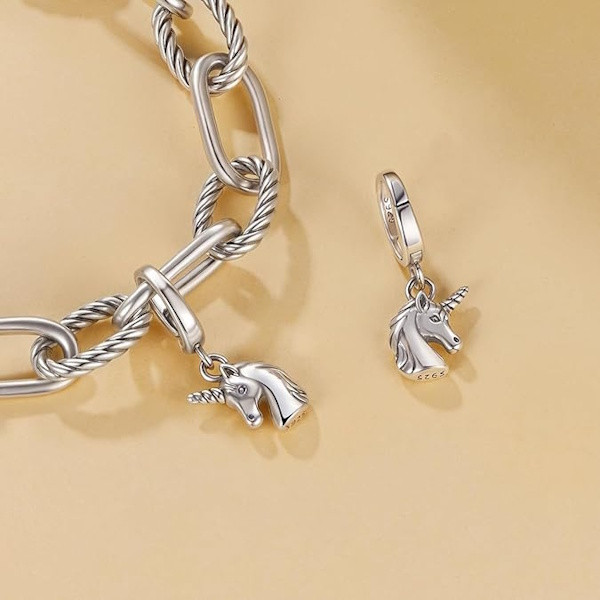 Az unikornisok varázslatos világát idéző ezüst charm tökéletes kiegészítője lehet bármely ékszerkollekciónak. Különleges, oxidált 925 sterling ezüst anyagból készült, amely időtálló ragyogást biztosít. Finom részletei és elegáns kialakítása révén csodásan mutat karkötőn vagy nyakláncon. Mérete ideális, 2.2 × 0.9 cm, így diszkréten emeli ki viselője stílusát anélkül, hogy túlzottan feltűnő lenne.