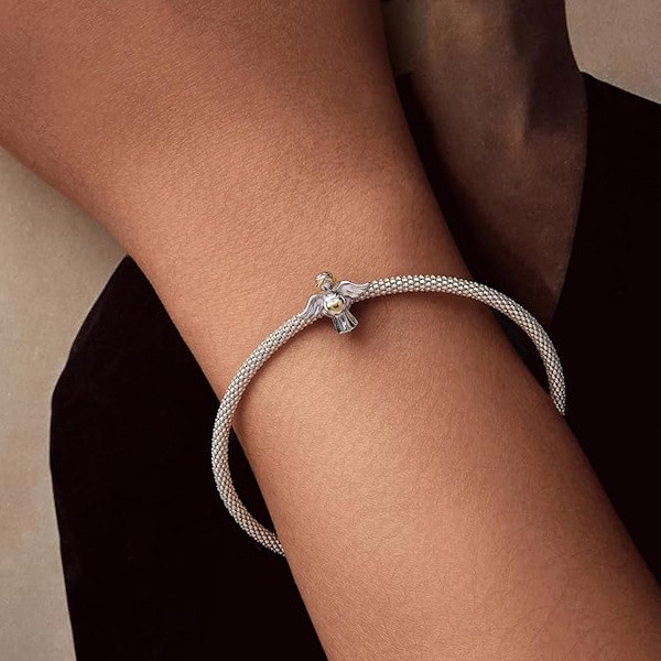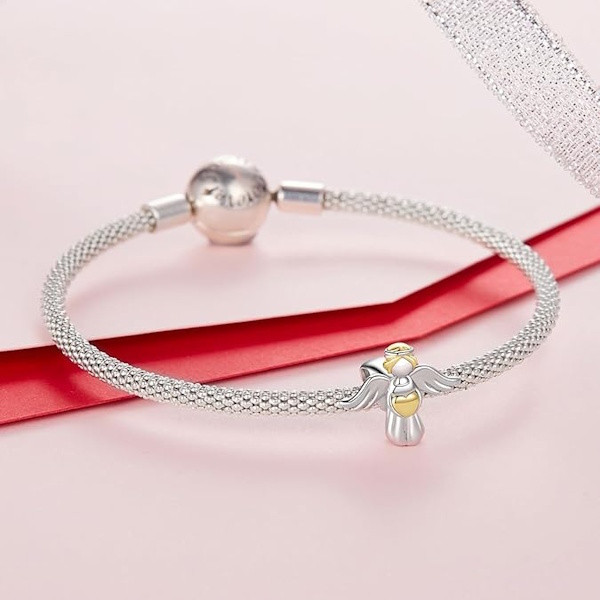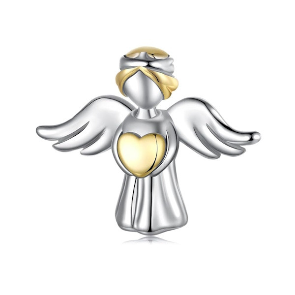 Az őrangyal ezüst charm tökéletes választás mindazok számára, akik hisznek az angyali védelem erejében. A 925-ös sterling ezüstből készült charm finom sárgaarany- és fehérarany-bevonatokkal van díszítve, amelyek elegáns fényt kölcsönöznek az ékszernek. Ideális méretű, így könnyen illeszthető bármilyen karkötőre vagy nyakláncra, hogy mindig veled legyen a szerencse. Az 1.4 x 1.1 cm-es méret és a mindössze 1.3 g súly biztosítja, hogy kényelmesen viselhesd akár egész nap. Tökéletes ajándék lehet szeretteidnek egy különleges alkalomra, mellyel kifejezheted törődésed és szereteted.