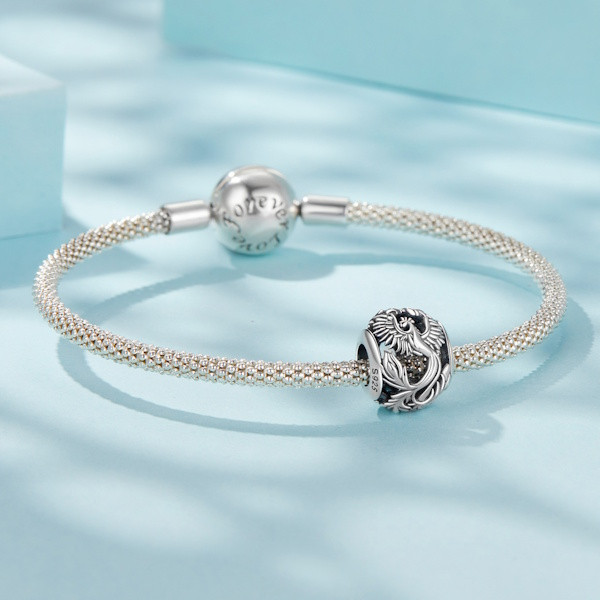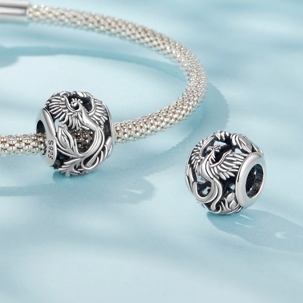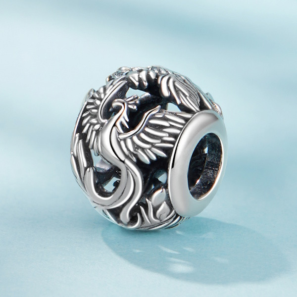 Emeld ki egyediségünket ezzel az elegáns főnixmadár ezüstcharmlal, amely minden ékszergyűjtemény különleges darabja lehet. A 925 sterling ezüstből készült charm finom oxidált felületével és részletgazdag kidolgozásával ragadja meg a tekintetet. Kompakt mérete, 1.1 × 0.9 cm, valamint 0.45 cm-es nyílása révén könnyedén illeszthető kedvenc karkötődre vagy nyakláncodra.