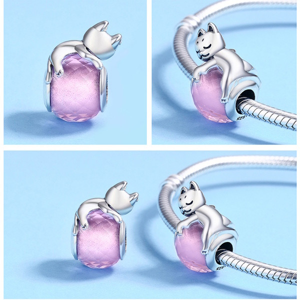 Szereted a macskákat és az elegáns ékszereket? Akkor ez az ezüst charm tökéletes választás számodra! A 925 sterling ezüstből készült, oxidált felületű charm egy játékos macskát ábrázol, aki éppen egy labdával játszik. Az áttetsző üveg díszítés különleges ragyogást kölcsönöz ennek a bájos ékszernek, amely minden karkötőt és nyakláncot egyedivé varázsol.