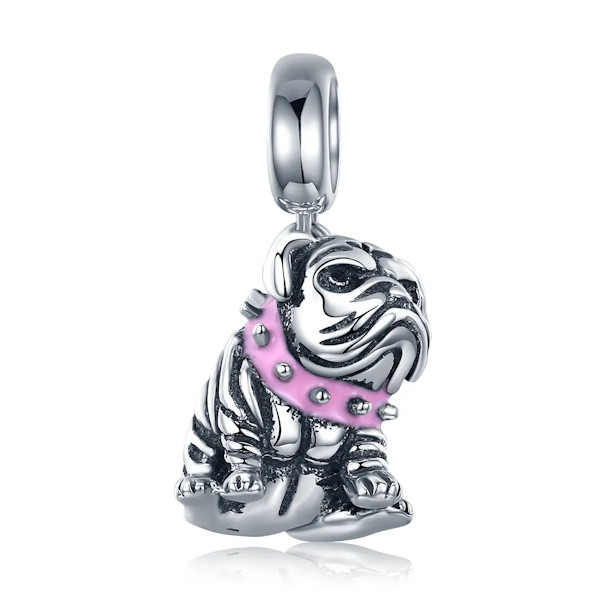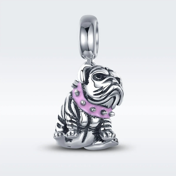 a 925 sterling ezüst charm, bulldog egy igazán különleges kiegészítő, amely minden állatbarát szívét megdobogtatja. Kiváló minőségű 925 sterling ezüstből készült, és az oxidált hatásának köszönhetően egyedi, vintage megjelenést kölcsönöz viselőjének. A színes zománcozás feldobja a charmot, és életre kelti az apró bulldog figurát, amely bármely karkötő vagy nyaklánc dísze lehet.