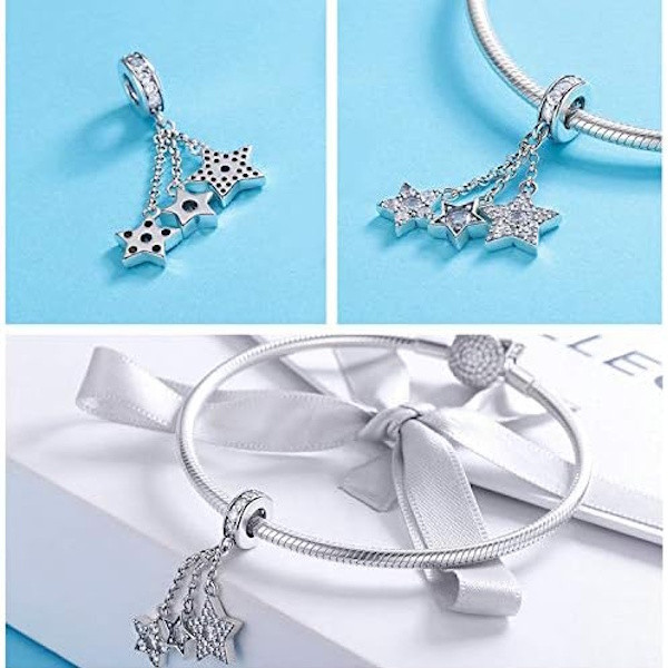 A "925 sterling ezüst charm csillagokkal" egy igazán különleges ékszer, amely tökéletesen kiegészíti bármely karkötőd vagy nyakláncod. A charm 925 sterling ezüstből készült, ami garantálja a tartósságot és a magas minőséget. Az oxidált felület különleges megjelenést kölcsönöz, míg a csillogó cirkóniumkristályok eleganciát sugároznak. A csillag motívum az évezredek óta az álmok és a vágyak szimbóluma, mely emlékeztet arra, hogy mindig kövesd az álmaidat.