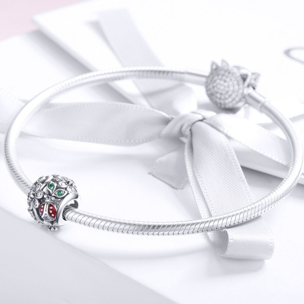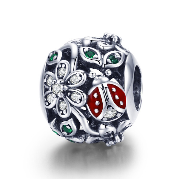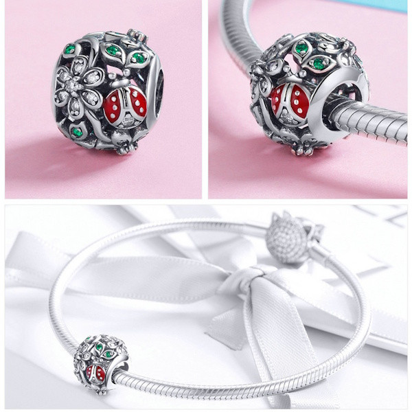 Ezüst charm (925) katicával és virággal