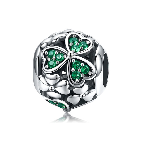 Ez a bájos 925 sterling ezüst charm tökéletes választás mindazoknak, akik szeretik az elegáns, mégis játékos kiegészítőket. A 925 sterling ezüstből készült charmot zöld cirkóniumkristályok díszítik, amelyek ragyogó megjelenést kölcsönöznek neki. A lóhere alakzat nemcsak esztétikus, hanem szimbolikus jelentéssel is bír: a szerencse és a jólét jelképe, így különleges jelentést ad viselőjének.