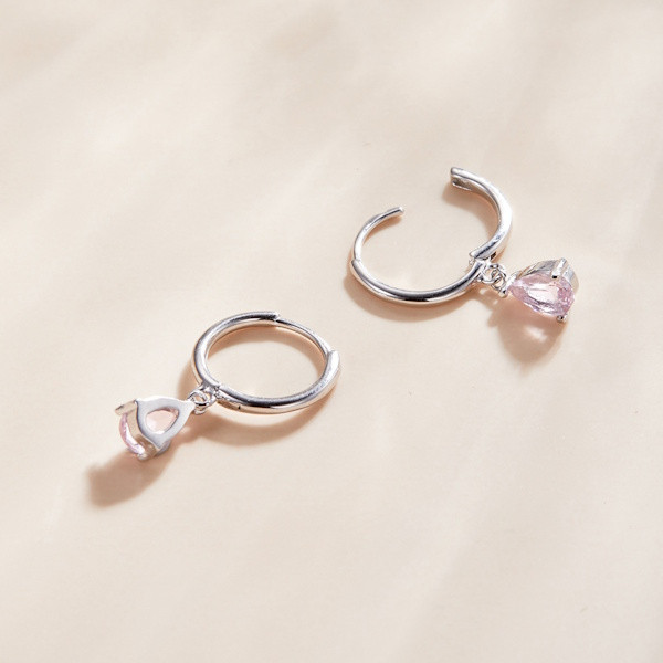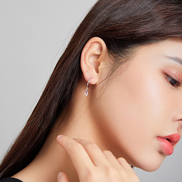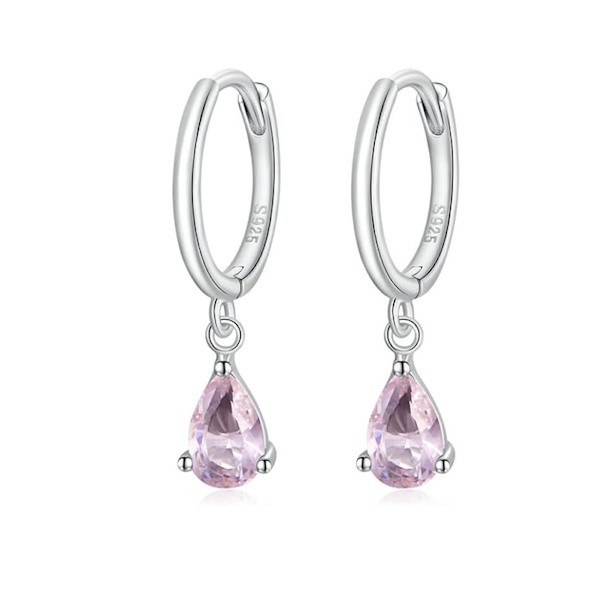 Ezüst fülbevaló csepp alakú kristállyal, rózsaszín