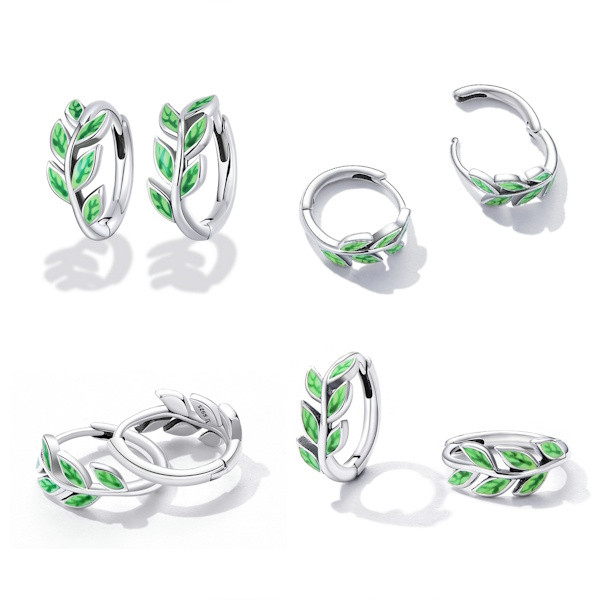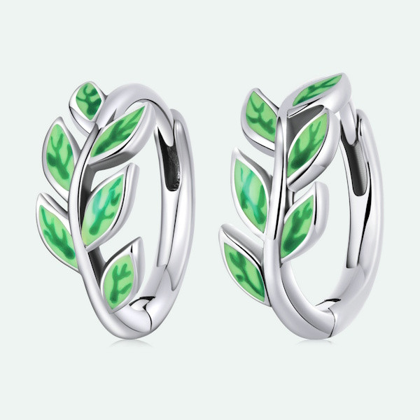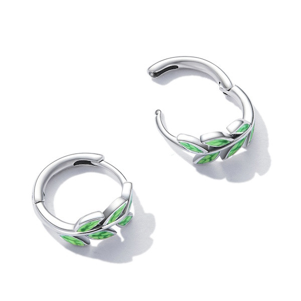 Ezüst fülbevaló zöld levelekkel