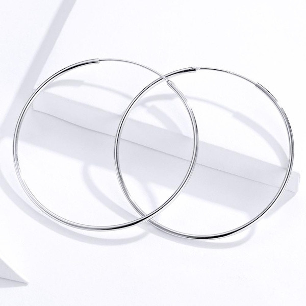 Ez az elegáns, nagyméretű ezüst karika-fülbevaló tökéletes választás mindennapi viselethez és különleges alkalmakra egyaránt. A 925 sterling ezüst alapanyagból készült fülbevaló platinabevonatának köszönhetően nemcsak időtálló, hanem ragyogó megjelenést is biztosít. A letisztult, minimalista stílusú kör alakzat minden öltözéket feldob, legyen szó egy egyszerű farmer-póló kombinációról vagy egy elegáns estélyiről.