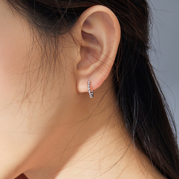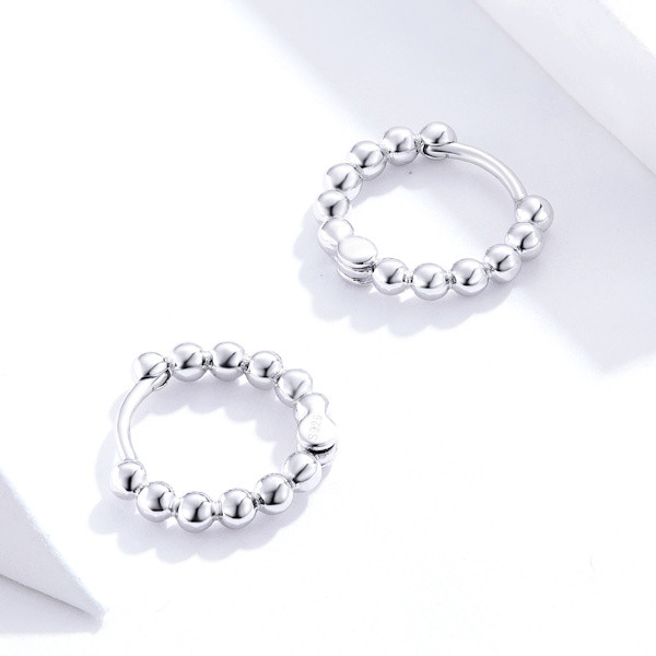 Fedezd fel az elegancia és a stílus tökéletes harmóniáját ezzel a lenyűgöző ezüst karika-fülbevalóval! A 925 sterling ezüstből készült, finom platinabevonattal ellátott darab igazi ékköve lehet bármely öltözetednek. Az apró, ezüstből készült golyók nemcsak különleges megjelenést kölcsönöznek a fülbevalónak, hanem finoman tükrözik a fényt, így minden pillantást magukkal ragadnak.