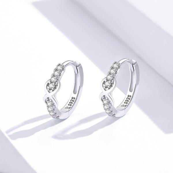 Az ezüst karika-fülbevaló a végtelen jelével nemcsak eleganciát, hanem mélyebb jelentést is hordoz. A végtelen szimbólum az örökkévalóságot, a határtalanságot és a soha el nem múló szeretetet jelképezi, így tökéletes választás lehet különleges alkalmakra vagy akár mindennapi viseletre is. A 925 sterling ezüst alapanyag platinabavonatával és fehér cirkóniumkristályaival ragyogó fényt és tartósságot biztosít.
