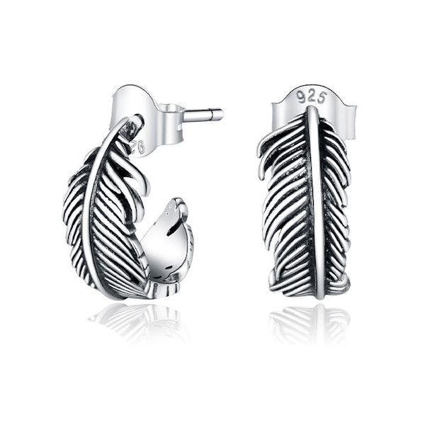 Ezüst fülbevaló, madártoll